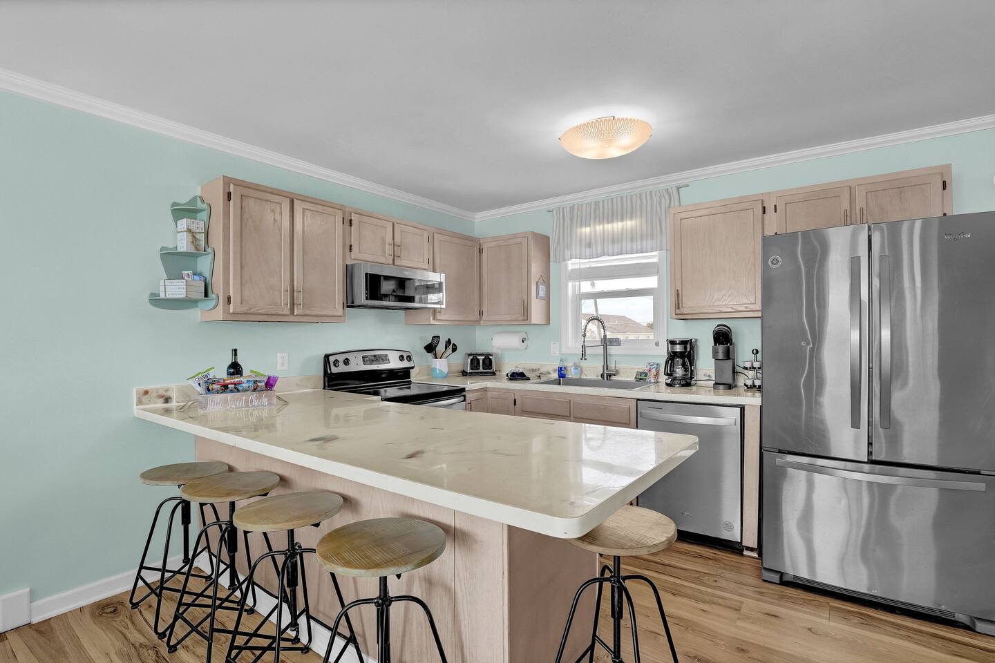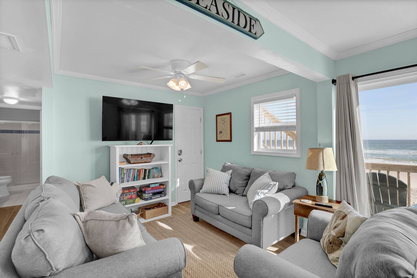 GENERAL: ✅ FREE PARKING directly in front of the cabin for up to three vehicles max ✅ SELF CHECK-IN with provided code in advance to remain contactless during the stay ✅ OCEANFRONT and the sea is visible from nearly every room in the house ✅ HIGH-SPEED WIFI available throughout the house for multiple devices ✅ KING BED in the master bedroom, queens in three bedrooms and 1 set of bunk beds ✅ PRIVATE SPACE for multi-family groups and extra common sleeping areas for the kiddos ✅ COOKING APPLIANCES include an oven, stove, refrigerator, microwave, toaster, slow-cooker, blender, coffee maker, dishwasher and a charcoal grill ✅ FULLY STOCKED KITCHEN includes pots, pans and cooking utensils as well as plates, bowls, cups and silverware ✅ HIGH QUALITY mattresses, pillows, linens, bed covers, bath towels, and hand towels ✅ WASHER/DRYER to handle all your laundry needs (stackable and convenient) ✅ SUPPLIES INCLUDED: paper towels, toilet paper, snacks, coffee, and dishwasher pods ✅ OTHER ITEMS include an iron, ironing board and cleaning supplies ENTERTAINMENT: ✅ SEASIDE walks and shell collecting within steps ✅ DOLPHIN SIGHTINGS daily from the back deck ✅ Popular BOARD GAMES for hours of family fun ✅ ARCADE SYSTEM for the kiddos (multiple games) ✅ HD TV in every bedroom with streaming channels ✅ CORNHOLE and other outdoor games available ✅ PIER and restaurants a couple miles down shore